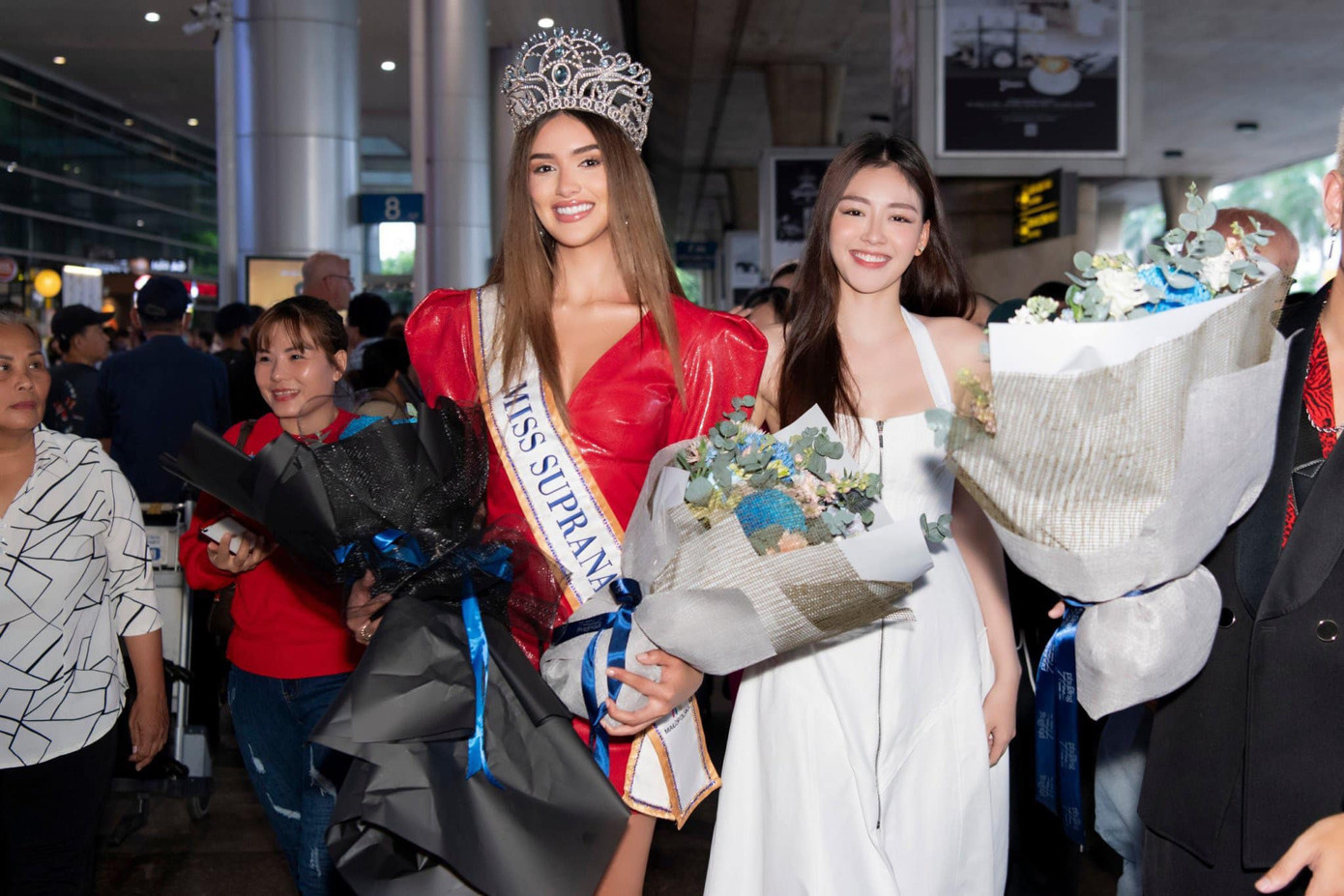| Đặng Thanh Ngân - Á hậu 4 Hoa hậu Siêu quốc gia 2023 ra sân bay chào đón Andrea Aguilera. |