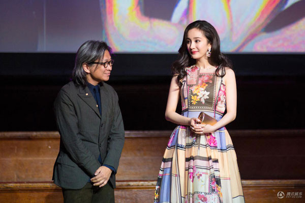 Đạo diễn Trần Khả Tân cùng Dương Mịch trên sân khấu lễ trao giải.