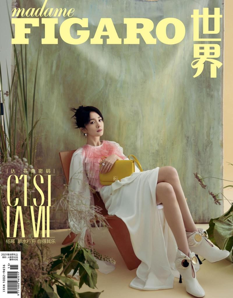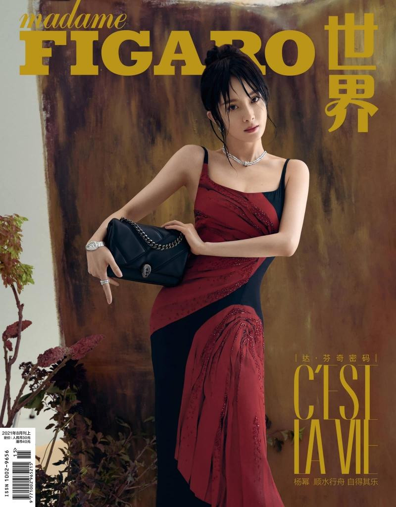 Loạt hình lần này của Dương Mịch trên tạp chí madame FIRAGO Trung số tháng 8 do thương hiệu Bvlgari đẩy bìa, cô vừa quảng bá cho dòng trang sức, vừa quảng bá cho dòng túi xách sang trọng của hãng.