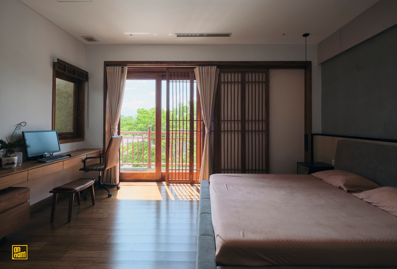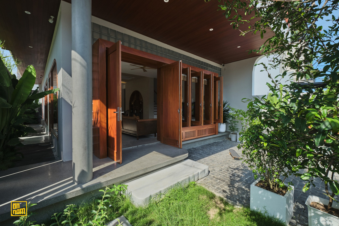Lồng ghép các nét truyền thống đặc trưng của kiến trúc Hội An bằng cách sử dụng nội thất từ các vật liệu tự nhiên truyền thống mây tre đan, gạch thẻ, khung cửa gỗ,...