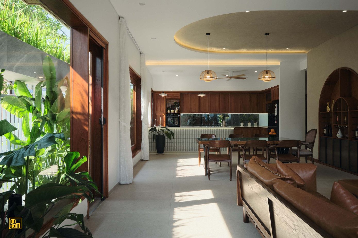 Nội thất của căn nhà là sự hoà quyện tinh tế của màu sắc cùng những vật liệu tự nhiên đã tạo nên một không gian ấm cúng, mộc mạc nhưng vẫn sang trọng và gần gũi, một tổ ấm nơi các thành viên trong gia đình có thể kết nối, vun vén tình yêu thương và cảm xúc.