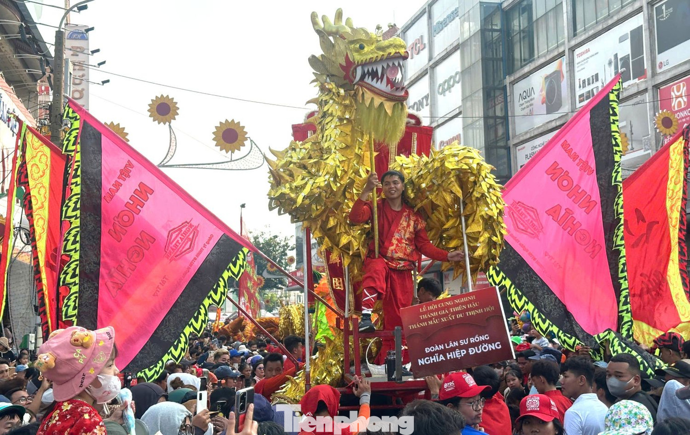 | Các đội lân sư rồng biểu diễn suốt c.hặng đường rước cộ Bà |