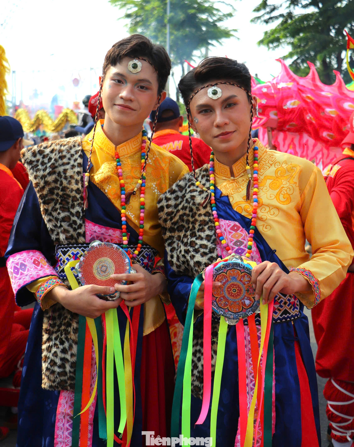 | Người dân vây quanh đoàn nghi lễ diễu hành. |