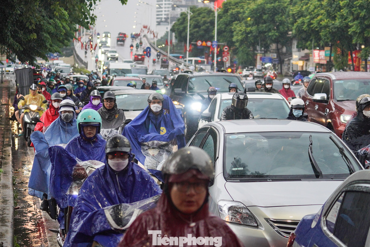 Ghi nhận của PV Tiền Phong, khoảng 17h, cơn mưa lớn đúng vào thời điểm tan tầm khiến nhiều tuyến phố ở Hà Nội như đường Láng, Kim Mã, Nguyễn Chí Thanh, Trần Duy Hưng... ùn tắc cục bộ, có nơi tắc dài nhiều giờ.