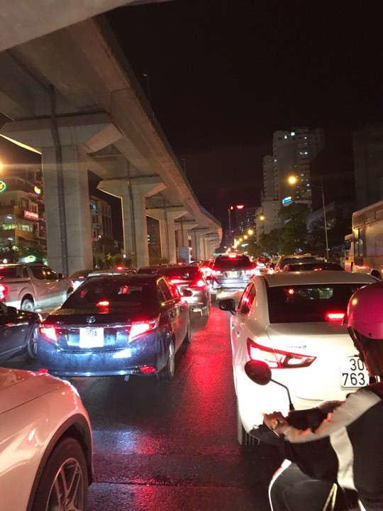 Dòng xe tê liệt không nhúc nhích. Sau cơn mưa lớn, các tuyến đường ùn ứ tắc kẹt cứng tại các con phố như Hoàng Cầu, Chùa Bộc, Tây Sơn...