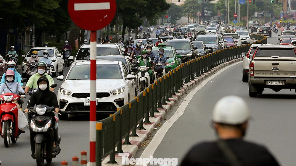 | Lưu lượng người và phương tiện tham gia giao thông trên đường đông không kém những ngày chưa có "lệnh" giãn cách xã hội. |