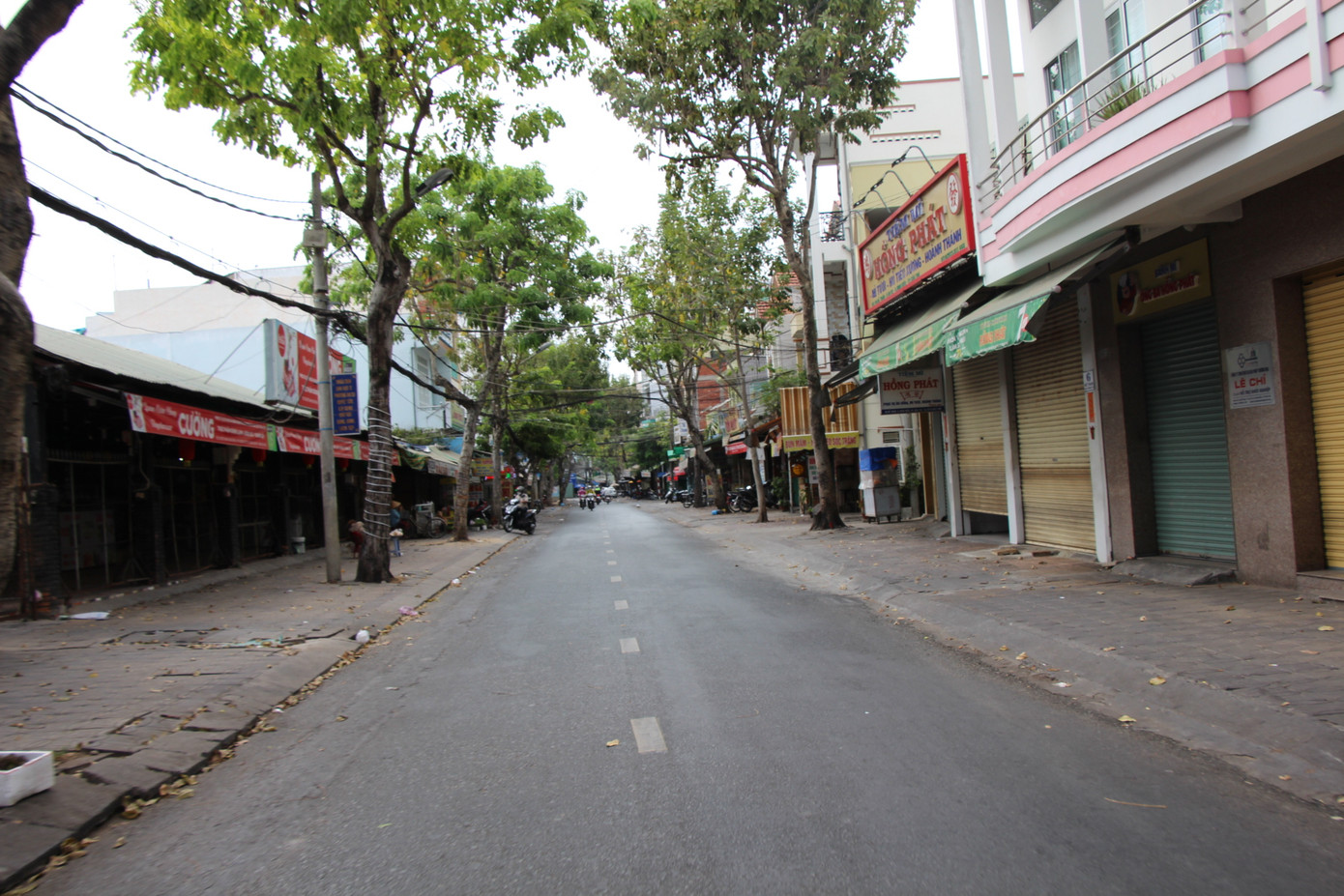 Đường phố vắng vẻ, nhiều cửa hàng ở bến Ninh Kiều đã đóng cửa.