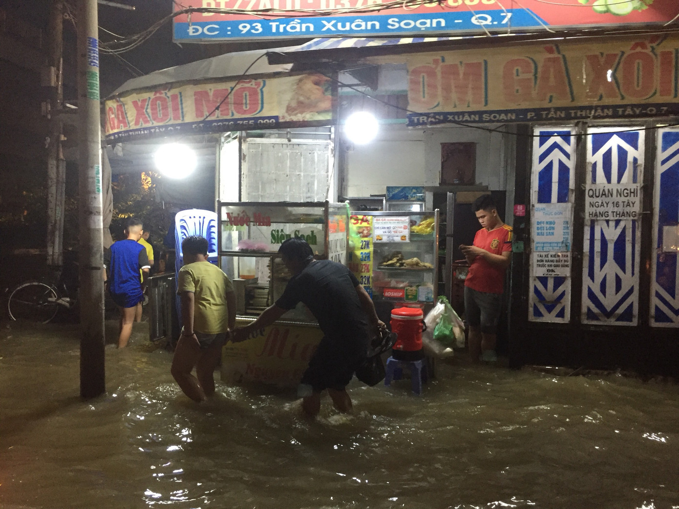 Trong đó, khu vực đường Trần Xuân Soạn, quận 7 là điểm ngập nặng nhất khi nước ngập lút bánh xe máy.