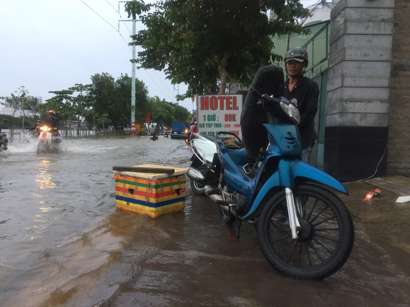 Triều cường kéo dài hơn 2 tiếng đồng hồ khiến giao thông, sinh hoạt của người dân gặp nhiều khó khăn.