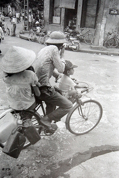 Một gia đình trên chiếc xe đạp Thống Nhất, phương tiện đi lại cũng là tài sản giá trị nhất của nhiều gia đình thời đó. Ảnh: John Ramsden.