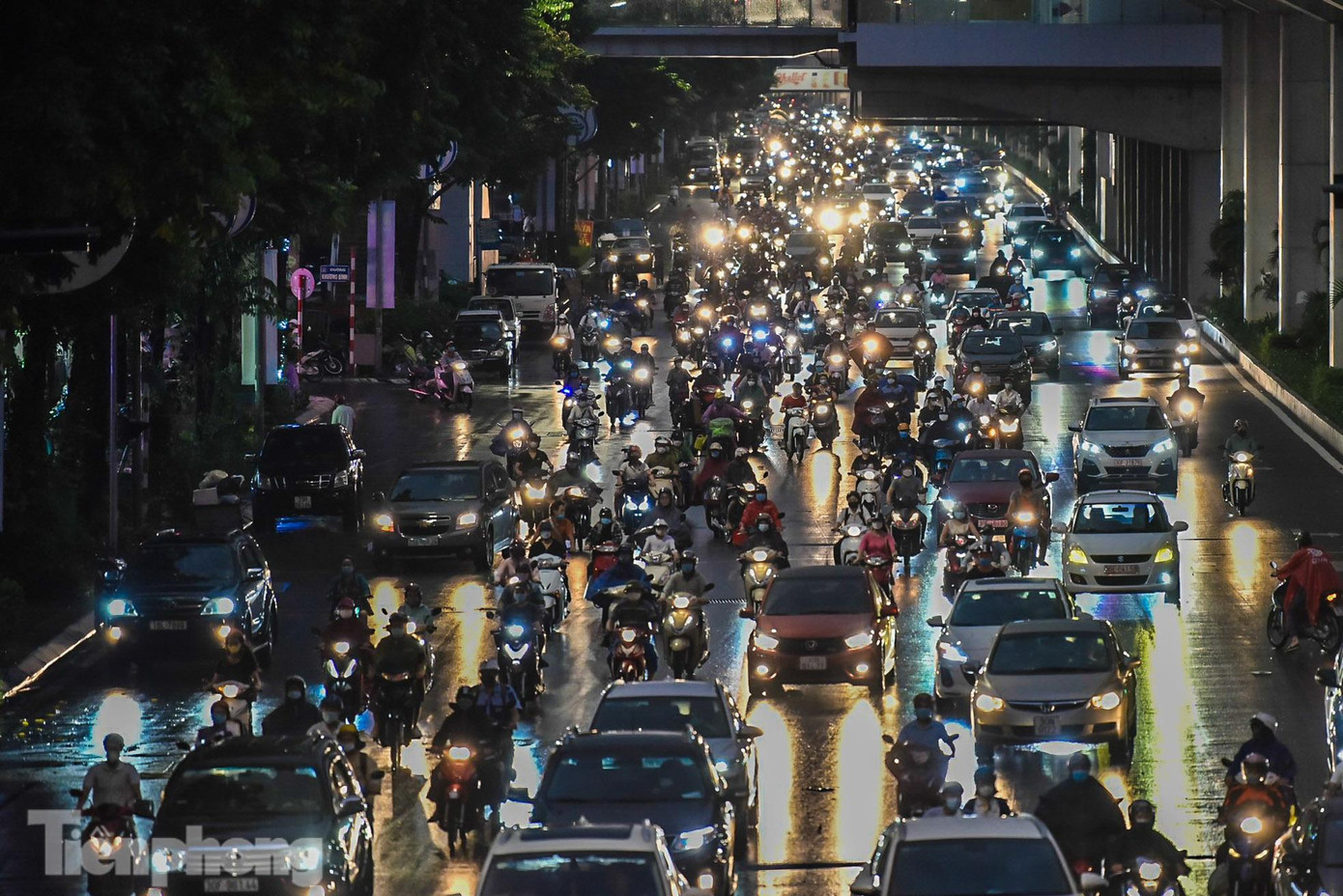 | Lượng phương tiện tham gia giao thông rất đông. |