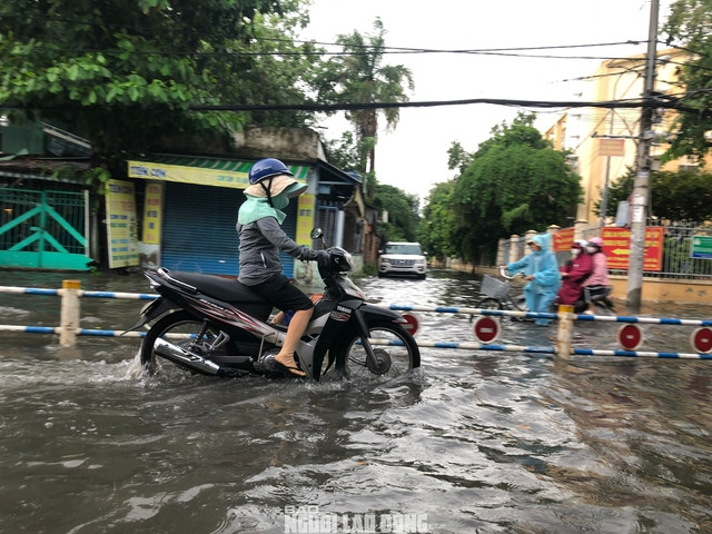 | Phương tiện bị chết máy khi đi qua đoạn ngập trên đường Nguyễn Văn Khối |