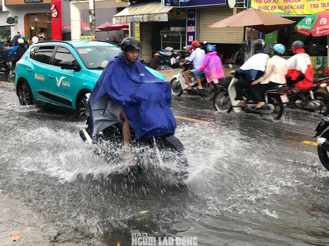 Trận mưa lớn và kéo dài gần 1 giờ khiến nhiều tuyến đường tại TP HCM ngập sâu trong nước.