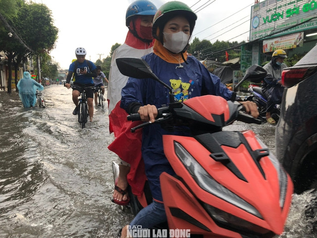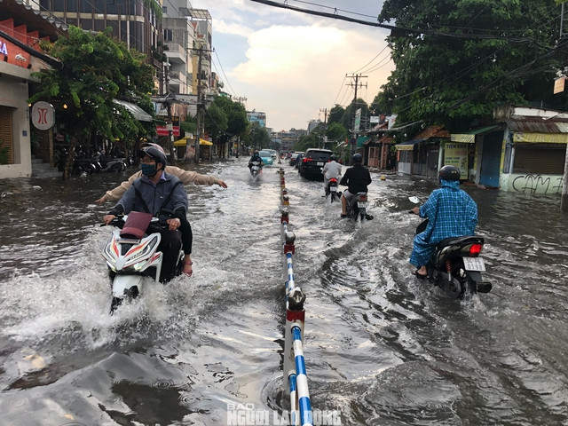 Đến hơn 16 giờ cùng ngày, đường Nguyễn Văn Khối (đoạn trước UBND phường 8, quận Gò Vấp) vẫn còn ngập lênh láng. Qua quan sát, khu vực này có đoạn ngập gần nửa bánh xe máy. Nhiều hàng quán hai bên đường rơi vào cảnh ế ẩm. Nhiều người khi đến đoạn ngập này phải chuyển sang hướng di chuyển khác.