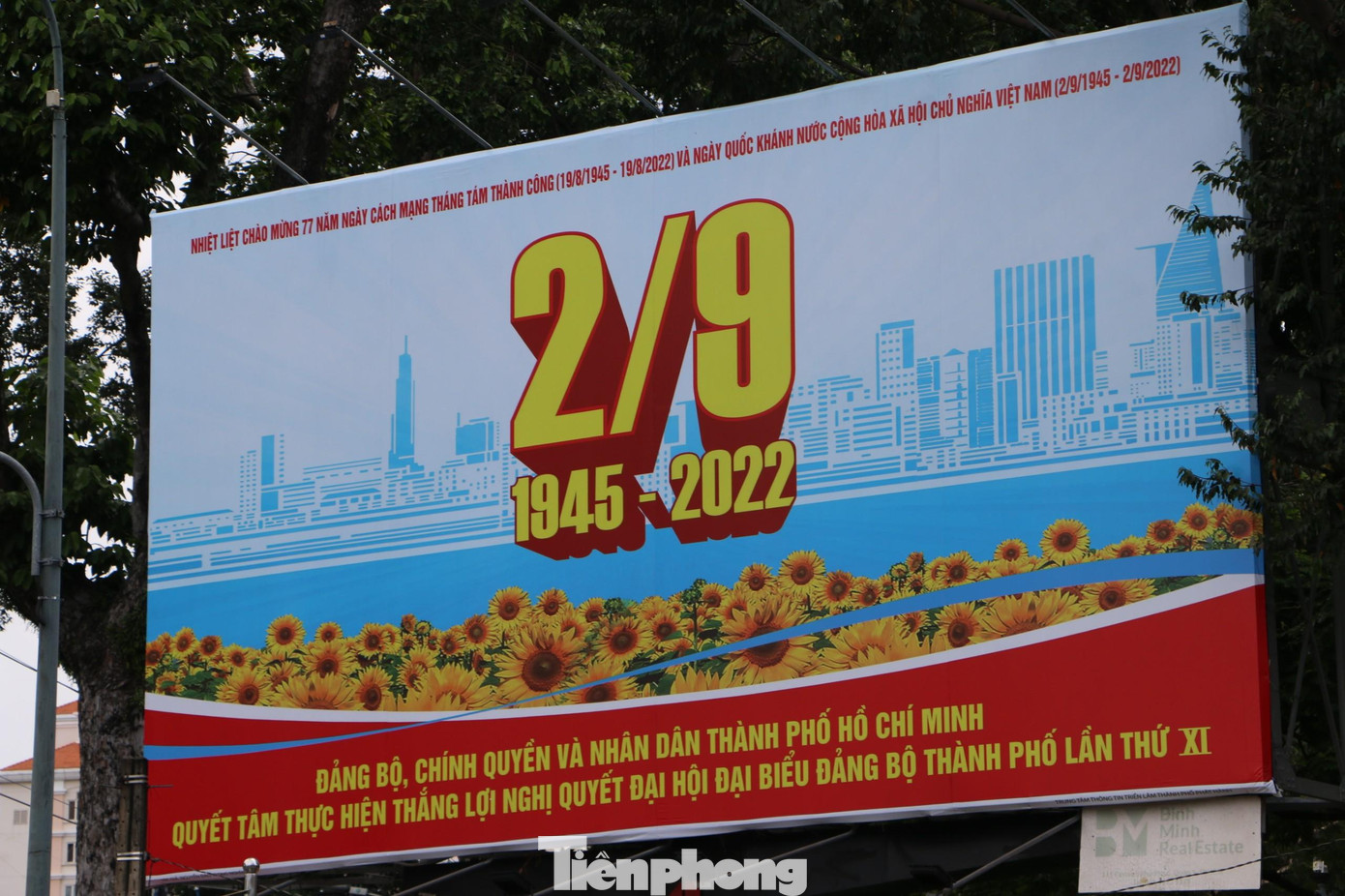 | Nhân dịp kỷ niệm 77 năm Ngày Cách mạng Tháng Tám và Quốc khánh 2/9, nhiều tuyến đường ở khu vực trung tâm TPHCM như Nguyễn Huệ, Lê Lợi, Nguyễn Thị Minh Khai, Lý Thái Tổ, Cách Mạng Tháng Tám, Điện Biên Phủ, Nam Kỳ Khởi Nghĩa... được trang trí cờ hoa, băng rôn, pano, áp phích rực rỡ. |