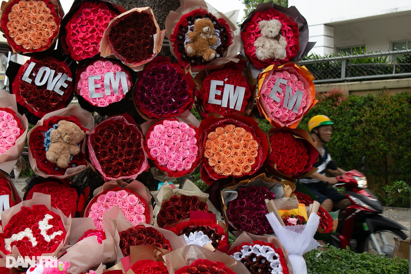 Năm nay, giá hoa hồng vẫn không thay đổi so với các năm trước, cả hoa tươi lẫn hoa giả. Hoa hồng có giá từ 10.000 - 30.000 đồng/cành (tùy loại). Khách hàng chủ yếu ưa chuộng hoa sáp có giá từ 100.000 - 500.000 đồng/bó.