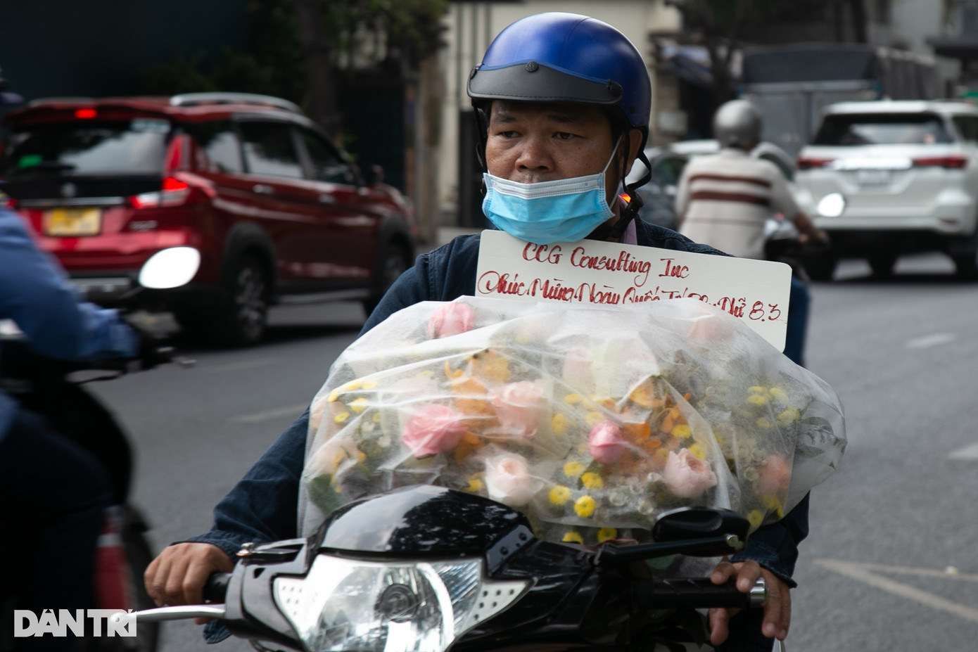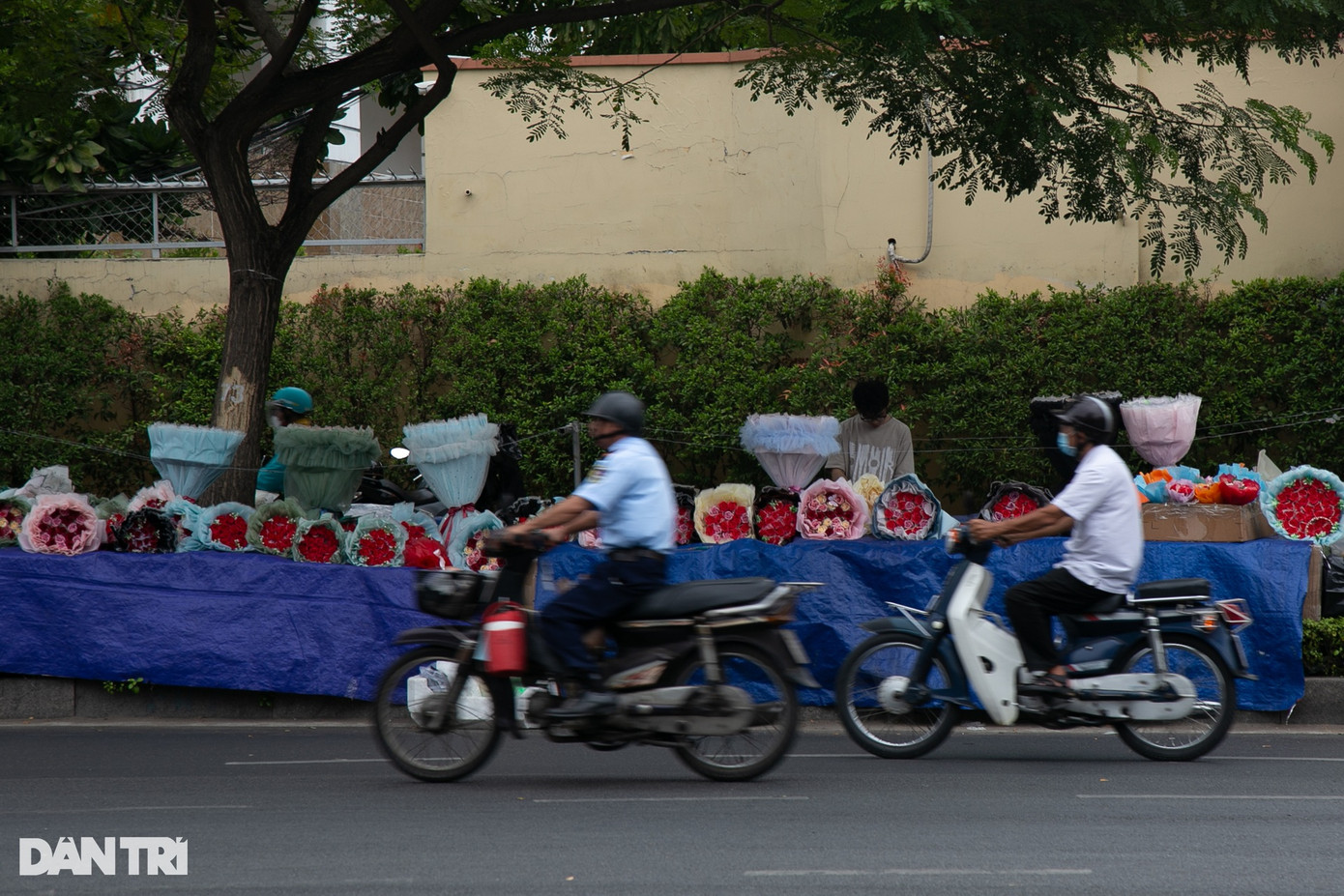 Anh Khánh Duy và chị Thảo (quận Bình Tân) cho biết bán hoa online hơn 10 năm nhưng vì kinh tế khó khăn nên chuyển từ khu vực Bình Tân lên đường Nguyễn Văn Cừ (quận 1) vào mỗi dịp lễ để bán hoa.