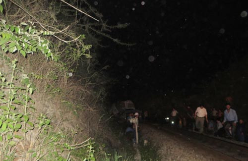 Trước đó 22h đêm 7/5, tài xế Cao Xuân Quang, trú huyện Quỳnh Lưu (Nghệ An) lái xe tải chở phía sau chiếc máy xúc mini chạy trên đường liên xã. Khi vượt đỉnh đèo tại xã Quỳnh Tân, huyện Quỳnh Lưu, bất ngờ máy xúc bị tuột dây chằng, rơi xuống chân đèo, nơi đường sắt Bắc - Nam chạy qua. Tay xúc của máy cắm lên đường ray.
