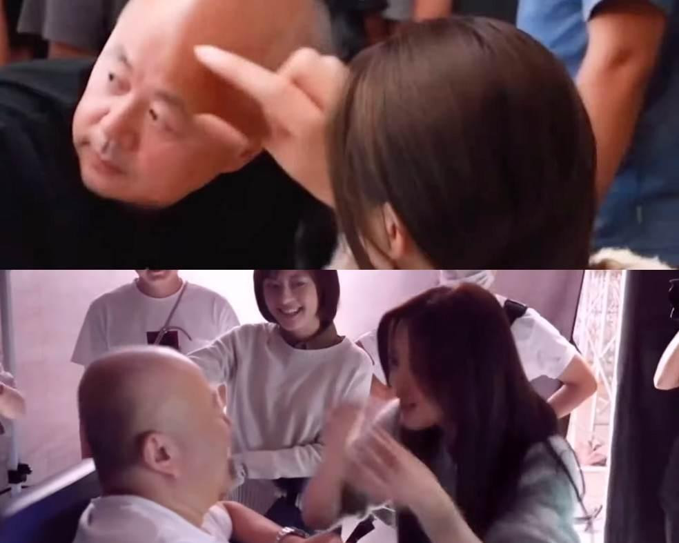 | Dương Siêu Việt vui đùa, thoải mái chụp ảnh cùng đạo diễn trên phim trường. |