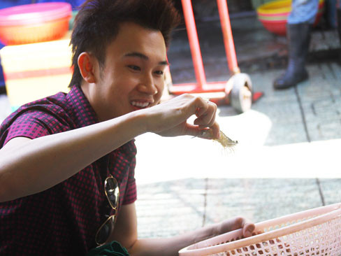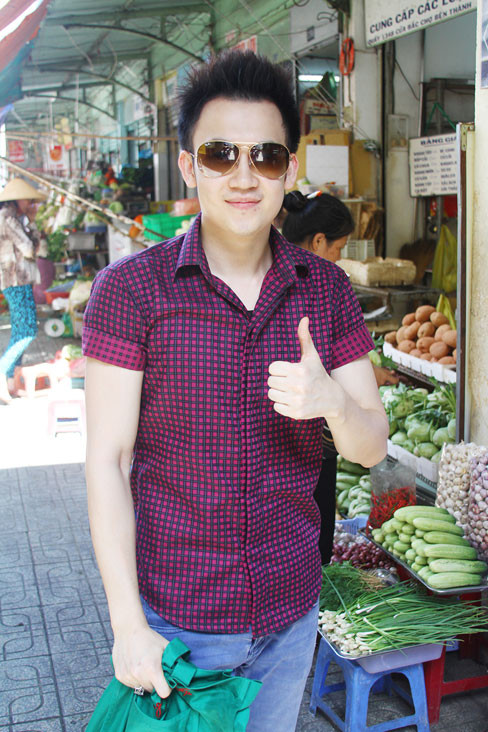 Sáng sớm, Dương Triệu Vũ đã tự xách giỏ đi chợ mua những nguyên liệu tươi ngon để nấu món ăn mà anh rất ưa thích. Anh lựa chọn thực phẩm không thua những bà nội trợ đi chợ.