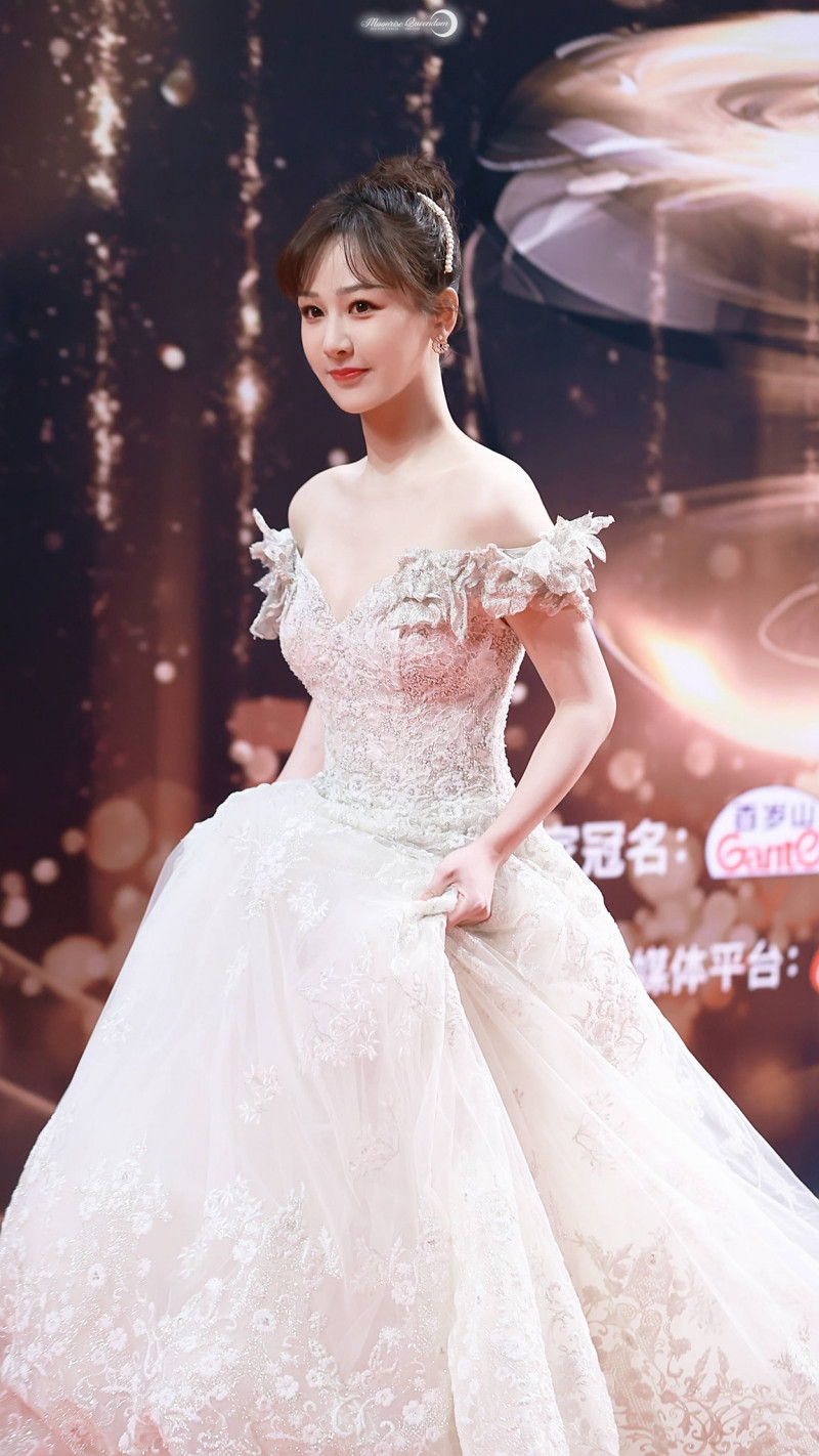 Ai cũng có thể nhận ra Dương Tử giảm cân rõ rệt từ lần xuất hiện đầy ấn tượng trên thảm đỏ Đêm hội Weibo cách đây gần 1 tuần. Tối ngày 5/3, tại lễ trao giải của đài Đông Phương, Dương Tử xuất hiện xinh đẹp trong bộ váy trắng bồng bềnh như cô dâu.