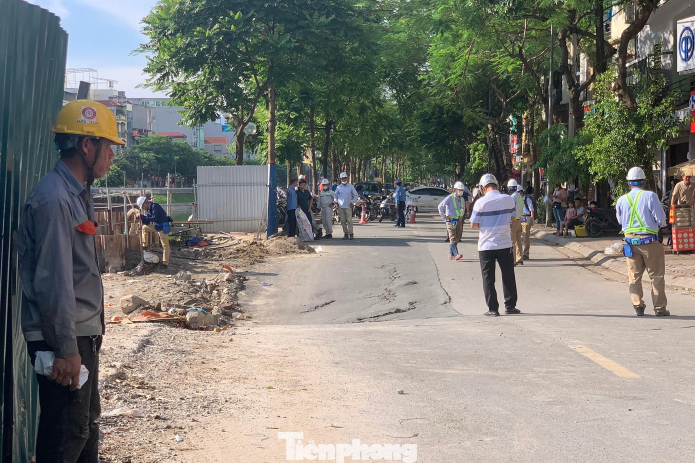 | Đoạn đường sụt lún nằm ngay cạnh phần thi công cống gom nước thải trên sông Tô Lịch. |