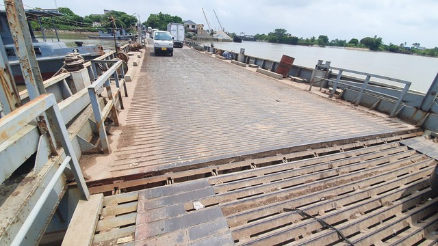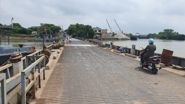 Cầu phao Ninh Cường có lịch sử lâu đời, nhiều phương tiện lưu thông hằng ngày