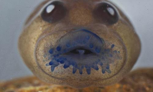 Các quan sát cho thấy nòng nọc ếch Frankixalus có miệng trơn như ống hút, không có răng có tác dụng hút kéo những quả trứng do mẹ chúng thả xuống vào miệng. Mắt được định vị trên chóp đầu thay vì hai bên dường như để giúp nó quan sát dễ dàng việc mẹ nó thả trứng xuống nước. Khi phát triển thành ếch trưởng thành, nó to tương đương quả bóng golf. Điều kỳ lạ khác là nó chỉ ăn thực vật chứ không phải là côn trùng và ấu trùng.