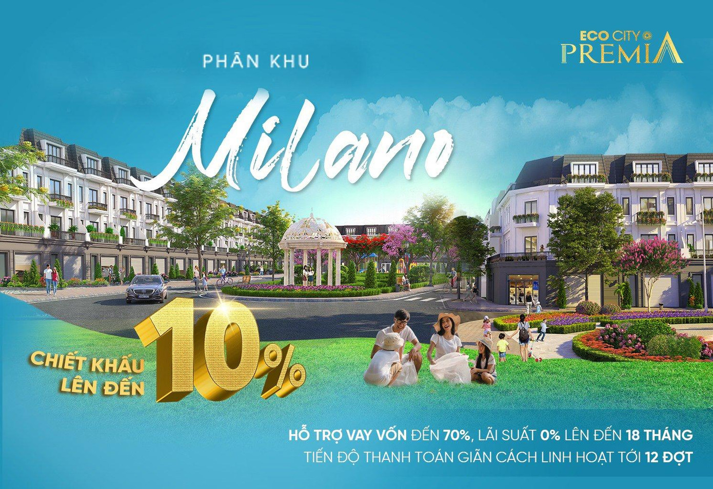 Thuộc dự án tiên phong xây dựng theo hướng đẳng cấp, đồng bộ EcoCity Premia, Milano là phân khu thứ tư được ra mắt và cũng là phân khu đầu tiên được đầu tư xây dựng theo hướng compound khu lõi. Đây là phân khu được thiết kế quy hoạch đề cao sự cân bằng, với khu động và khu tĩnh. Sự kết hợp giữa khu Nhà phố thương mại sôi động, phồn hoa và Nhà phố vườn thư thái, đẳng cấp như bản giao hòa cuộc sống dành riêng cho mỗi cư dân.