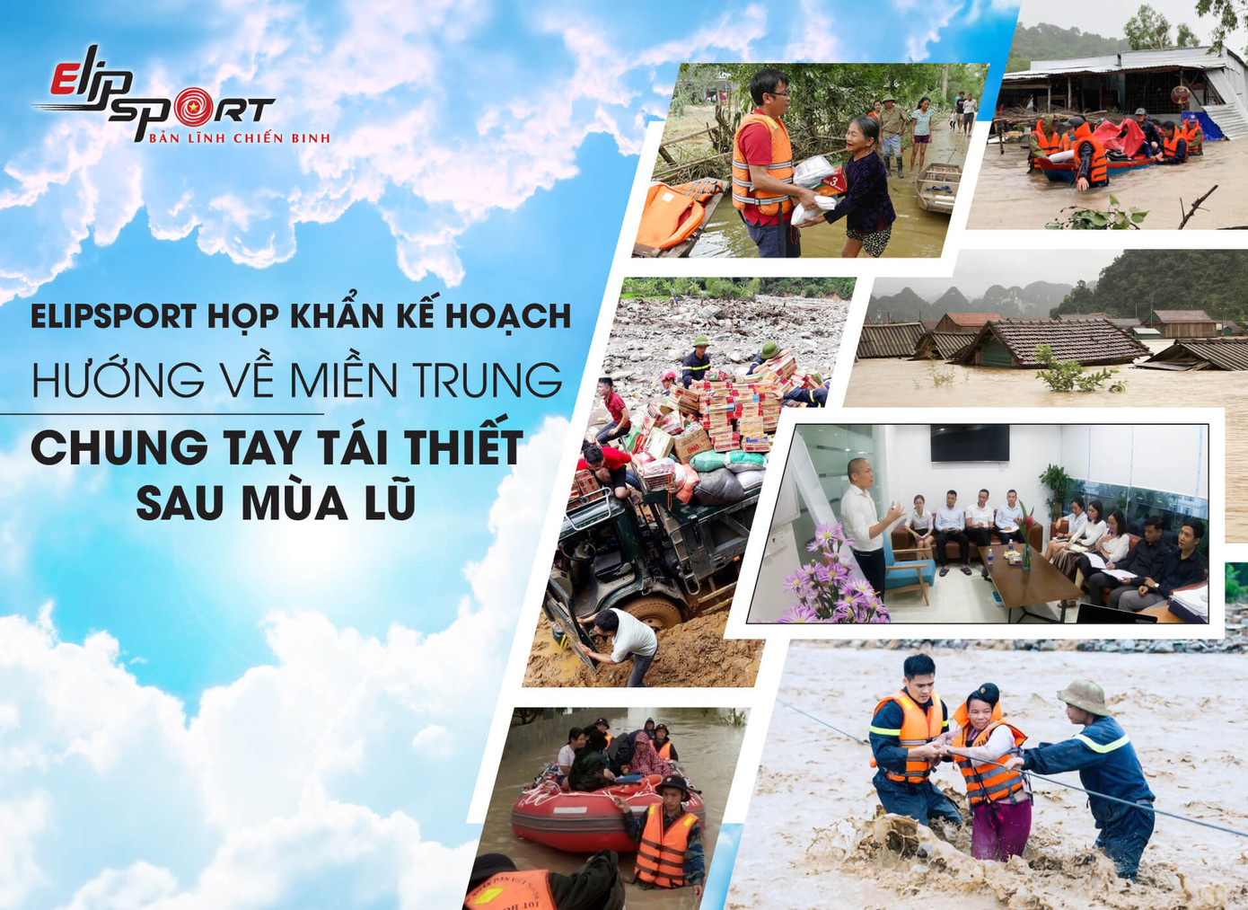 Trước tình hình lũ lụt và thiên tai của miền Trung, tập đoàn thể thao Elipsport đã phát động phong trào “ích mình, giúp người”. Trong đó, bất kỳ khách hàng nào khi mua các sản phẩm như máy chạy bộ và sản phẩm chăm sóc sức khỏe khác của thương hiệu Elipsport trong giai đoạn này cũng sẽ góp phần ủng hộ công cuộc tái thiết miền Trung sau bão lũ.
