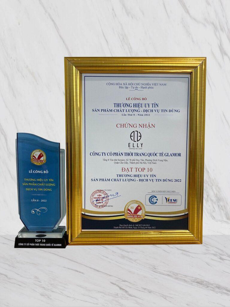 Giải thưởng Top 10 thương hiệu uy tín, sản phẩm chất lượng, dịch vụ tin dùng 2022 là niềm tự hào và là sự khẳng định vị thế dẫn đầu thị trường trong nước với các sản phẩm phụ kiện thời trang nam, nữ của ELLY. Đây cũng chính là động lực to lớn để ELLY tiếp tục cống hiến và phát triển mạnh mẽ trong tương lai.