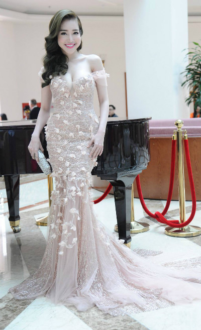 Elly Trần đến dự họp báo ra mắt "Lễ hội khinh khí cầu", nằm trong khuôn khổ hoạt động của Festival Huế 2016. Bà mẹ trẻ đến sớm và ngồi đợi dưới hàng ghế khách mời.