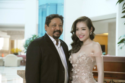 Elly Trần chụp hình cùng một nhà sản xuất phim Ấn Độ tại Việt Nam.