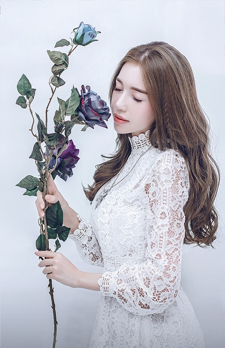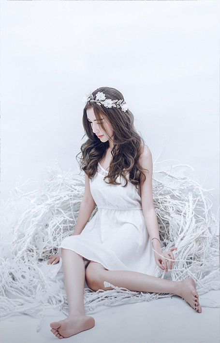 Bộ ảnh được thực hiện với phong cách tối giản khi Elly Trần diện những chiếc váy có sắc trắng đơn giản và tạo dáng bên những cánh hoa lãng mạn.