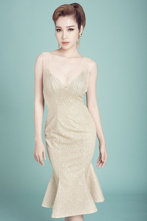 Người đẹp khoe dáng trong váy hai dây đuôi cá dáng lửng.