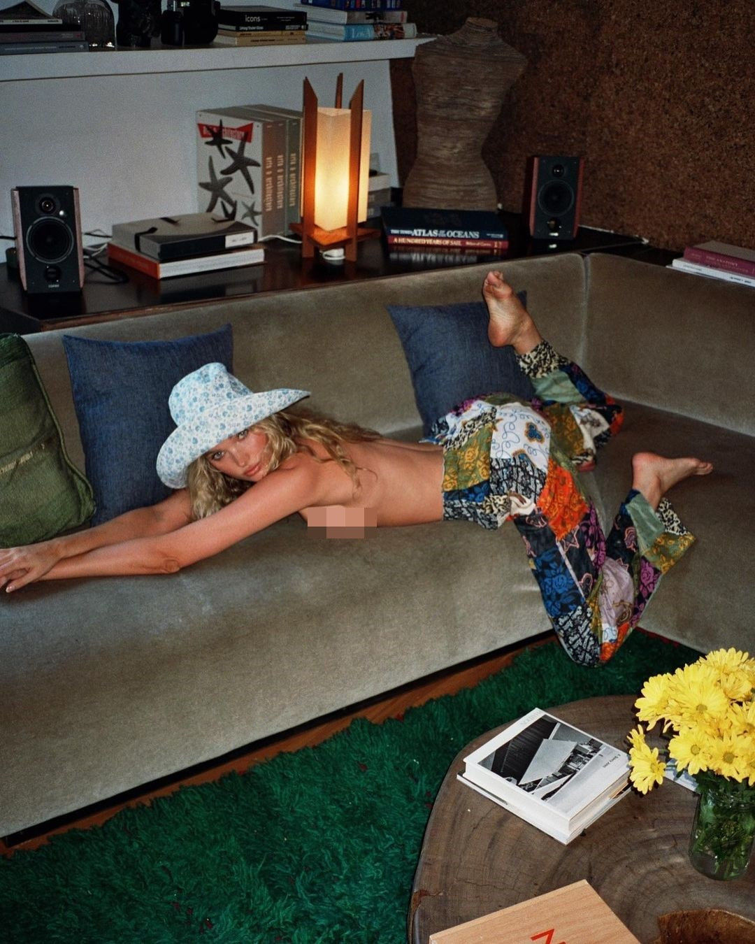 Mỹ nhân Thụy Điển tay che ngực trần đầy quyến rũ.