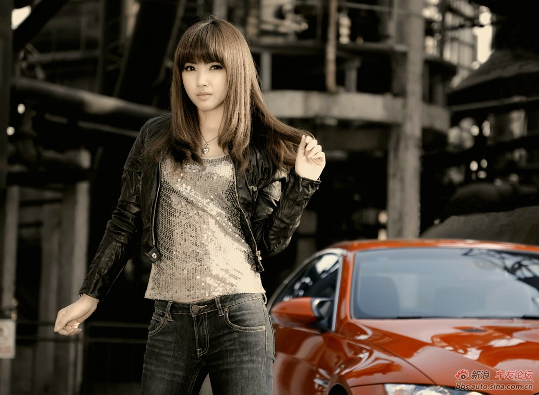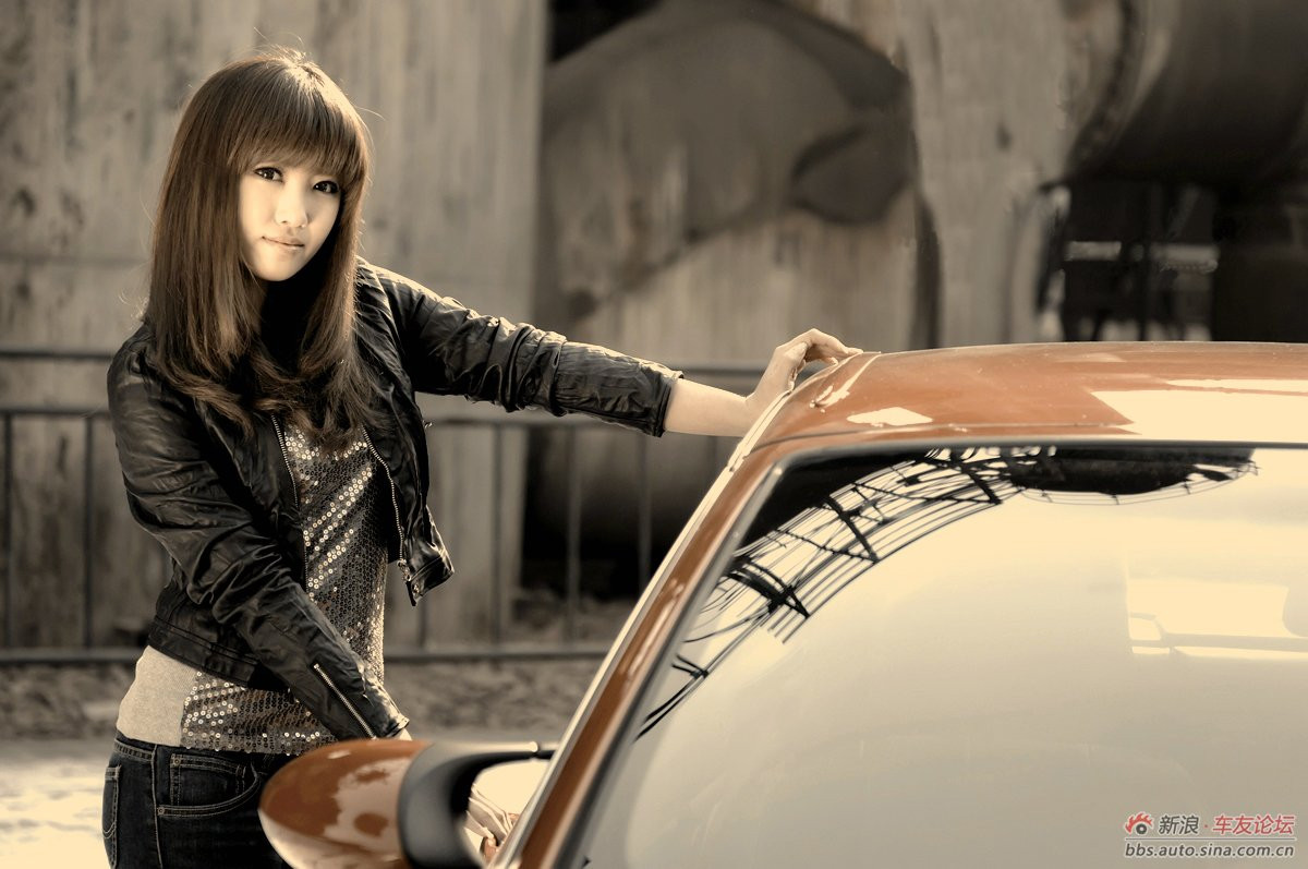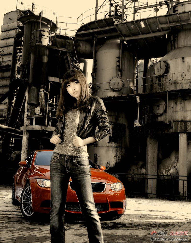 Bên chiếc xe BMW xinh đẹp như một bông hồng, cô người mẫu xinh xắn rạng ngời.