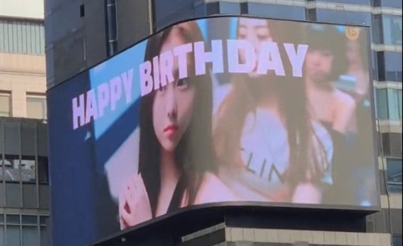 | Fan hâm mộ nước ngoài chạy biển quảng cáo chúc mừng sinh nhật Kim Garam. |