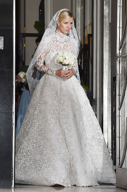 Nicky năm nay 31 tuổi, trông cô rất lộng lẫy và sang trọng trong chiếc váy cưới ren trắng của thương hiệu Valentino. Cô nàng tiết lộ rằng từ khi còn nhỏ đã ao ước được mặc váy cưới của nhà mốt đình đám này.