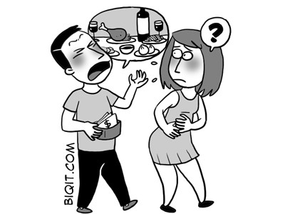 Hoặc là cả hai lý do cùng lúc. Như vậy cũng đáng yêu quá đi chứ. Này nhé, lo cho em này, nhưng vẫn không quên lo cho chính mình này. Điều này rất tốt vì khi phải chung lưng đấu cật chiến đấu với đời, cặp đôi không ai được phép rời bỏ vị trí, đặc biệt vì lý do lãng xẹt là: ĐÓI! Anh ấy còn biết đầu tư rất hợp lý, ở cả hai lĩnh vực: đầu tư truyền thống (một bữa ăn hợp mốt, lại tiết kiệm); và đầu tư mạo hiểm (một tình yêu nhiều thắc mắc lại không rõ kết quả). Có gì mà phải chột dạ hở em?