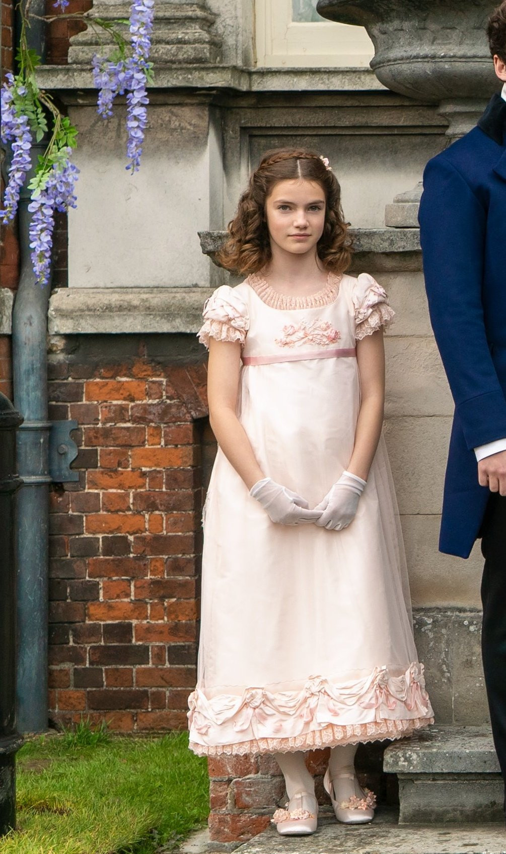 Trong chiếc váy được thiết kế riêng của Louis Vuitton với những đường cắt tinh tế, Florence Hunt trông rất xinh đẹp. Sở dĩ những khán giả yêu mến cô bất ngờ là bởi dường như họ đã được chứng kiến sự diệu kỳ của thời gian. Cô bé “Hyacinth Bridgerton” bé nhỏ ngày nào nay đã trưởng thành.