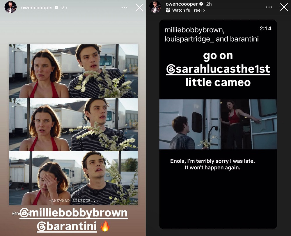 Nam diễn viên trẻ tuổi Owen Cooper - đảm nhận vai chính trong Biến Cố Tuổi Thành Niên cũng đăng trên story Instagram “nhá hàng” rằng cậu sẽ xuất hiện trong Enola Holmes 3 với vai trò một “khách mời nhỏ”.