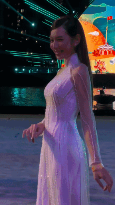 Mới đây, Thùy Tiên diện áo dài thướt tha trong một sự kiện. Trong khi mải mê tạo dáng chụp ảnh, có một vị khách mời đi ngang qua Thùy Tiên và nàng hậu nhanh chóng cúi chào lịch sự. Khoảnh khắc này diễn ra rất nhanh, nhưng vẫn đủ để netizen khen ngợi Thùy Tiên phản ứng quá nhanh.