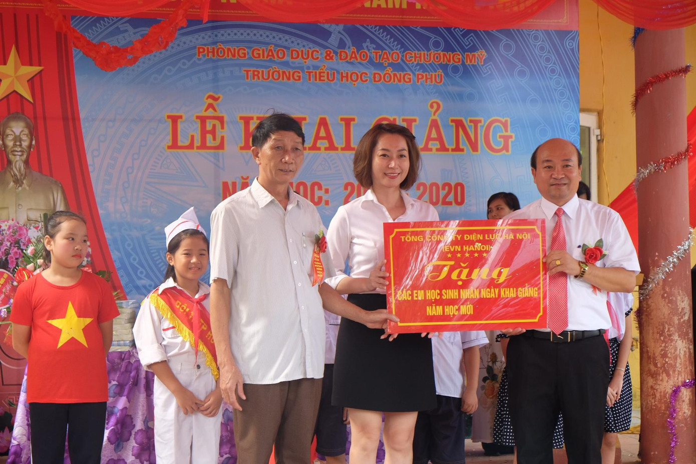 Cũng nhân dịp này, Tổng Cty Điện lực TP Hà Nội (EVN HANOI) tặng 2.000 cuốn vở cho trường. Bên trong những quyển vở có nội dung tuyên truyền các cách sử dụng điện an toàn, hiệu quả của EVN HANOI.