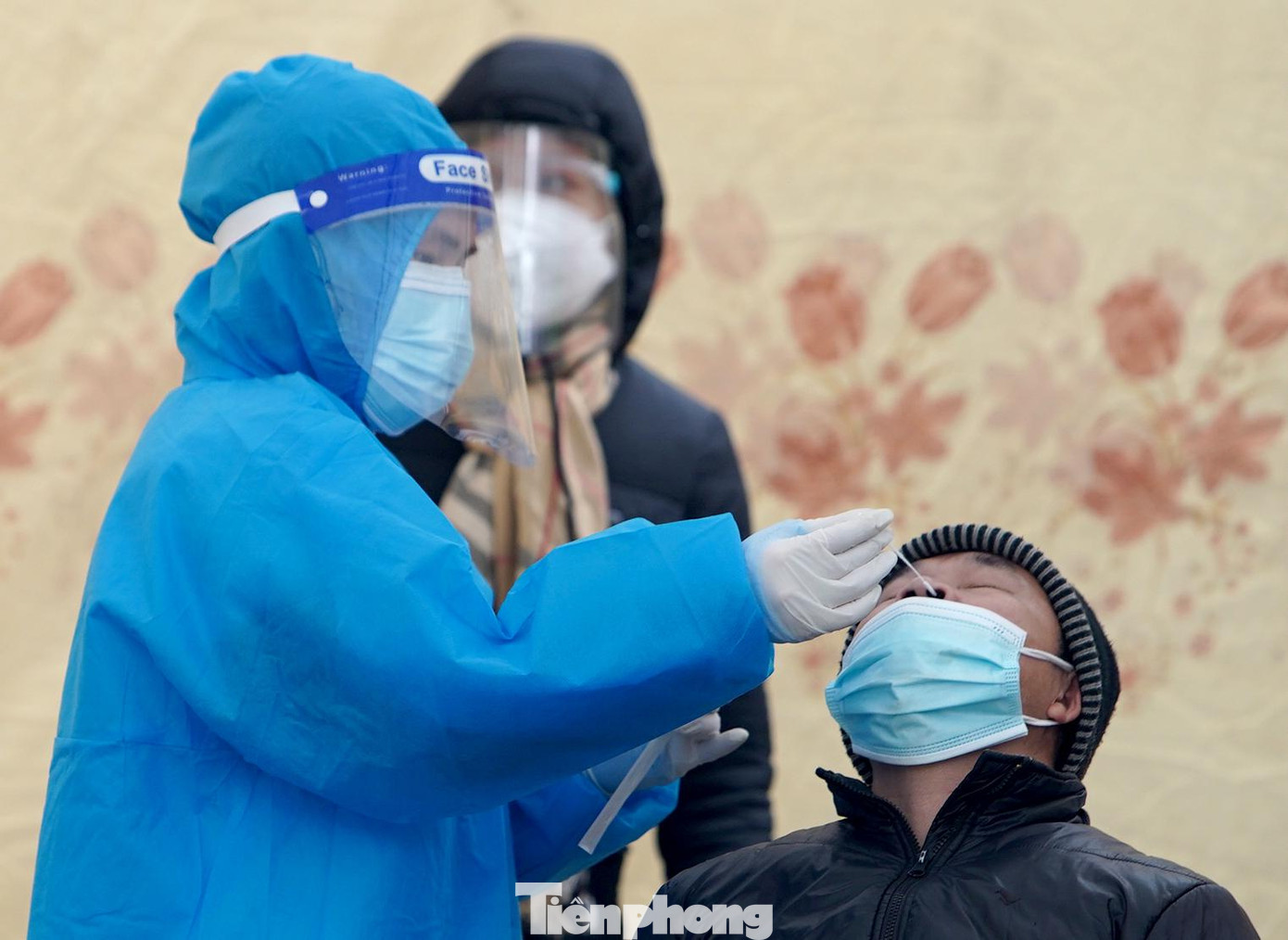 | Phía trong sân nhà văn hóa, nhân viên y tế phường tất bật làm nhiệm vụ lấy mẫu xét nghiệm cho hàng chục người dân trên địa bàn. |