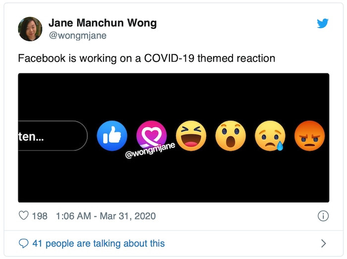 Cụ thể, nữ lập trình viên Jane Manchun Wong, người đã nhiều lần tự mình tìm ra những lỗ hổng hoặc tính năng chưa được công bố của Facebook, đã phát hiện mạng xã hội này đang phát triển biểu tượng cảm xúc “Stay Home” (Ở nhà). Facebook cũng xác nhận rằng họ đang phát triển biểu tượng này, nhưng từ chối cho biết thông tin chi tiết hoặc thời gian ra mắt chính thức.