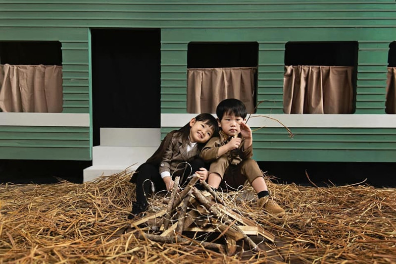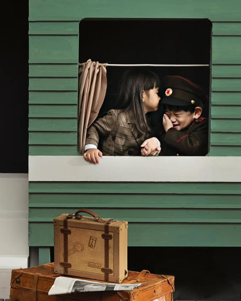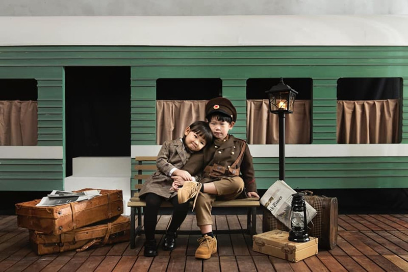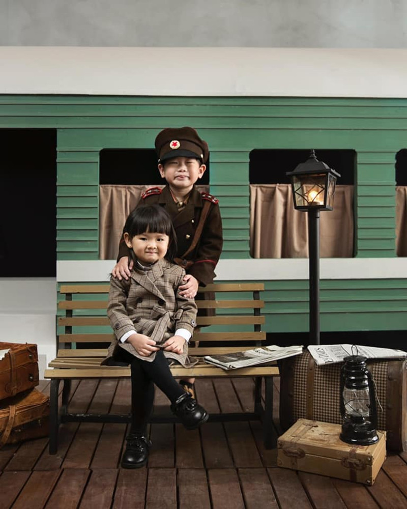 Bối cảnh của bộ ảnh được dựng trong studio khá cầu kỳ, với toa tàu, vali và đèn dầu y như trong phim.