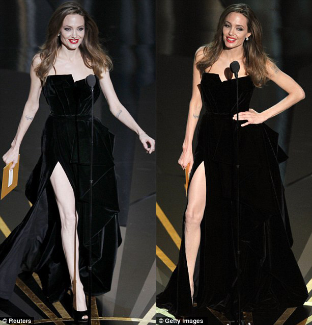 Rất nhiều ý kiến trên các diễn đàn cho rằng Angelina Jolie đã khoe chân hơi quá đà, nhưng có vẻ tối qua nữ diễn viên không hề bận tâm tới những lời bàn tán và cô vẫn tự tin tiếp tục thu hút sự chú ý của các quan khách bằng cách liên tục vén tà váy xẻ cao để lộ đôi chân trắng muốt.