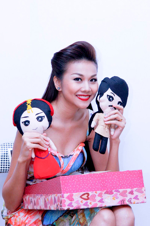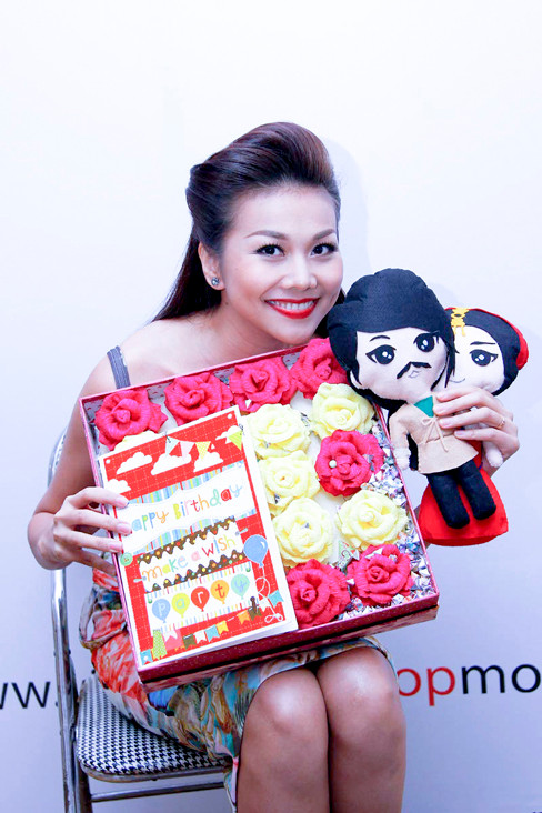 Hạnh phúc trước tình cảm của fans tại đây, vị giám khảo xinh đẹp đã có những tấm ảnh rất "xì teen" bên cạnh những món quà đáng yêu của mình.