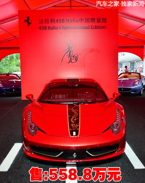 | "Ngựa chiến" Ferrari 458 Italia China Limited Edition được bán với giá 5,588 triệu Nhân dân tệ, tương đương 879.000 USD, tại thị trường Trung Quốc . |